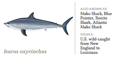There are two species of mako shark: shortfin mako (Isurus oxyrinchus) and longfin mako (I. paucus). Shortfin mako is the more common of the two and is the commercially important species. In fact, U.S. fishermen are prohibited from harvesting longfin mako in the Atlantic, Gulf of Mexico, and Caribbean due to their current depleted population levels.