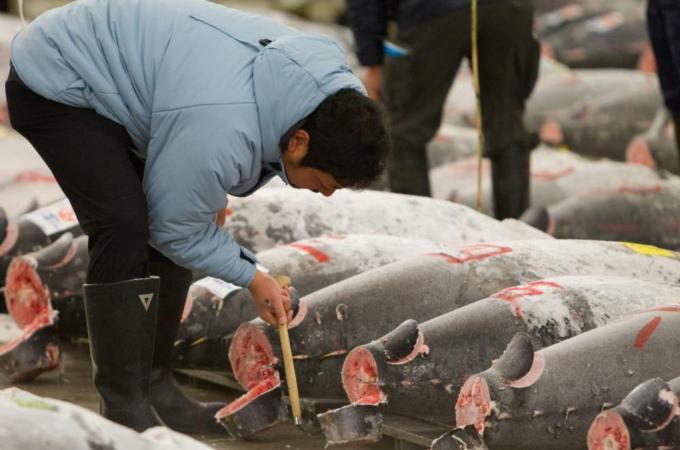 A single weighty tuna with the right fat and meat could sell for hundreds of thousands of dollars in Japan. In 2013, a record $1.8m was paid by a sushi restaurant owner for a single bluefin tuna weighing 222kg.