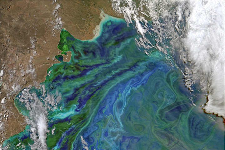 Plankton blooms dot the world’s oceans throughout the year when iron mixes with fertile ocean currents and spawn little aquatic gardens. In early December, just such a bloom occurred off the southern tip of South America. The Suomi NPP satellite captured this iridescent brew of green plankton-rich water swirling amidst plain ol’ seawater.