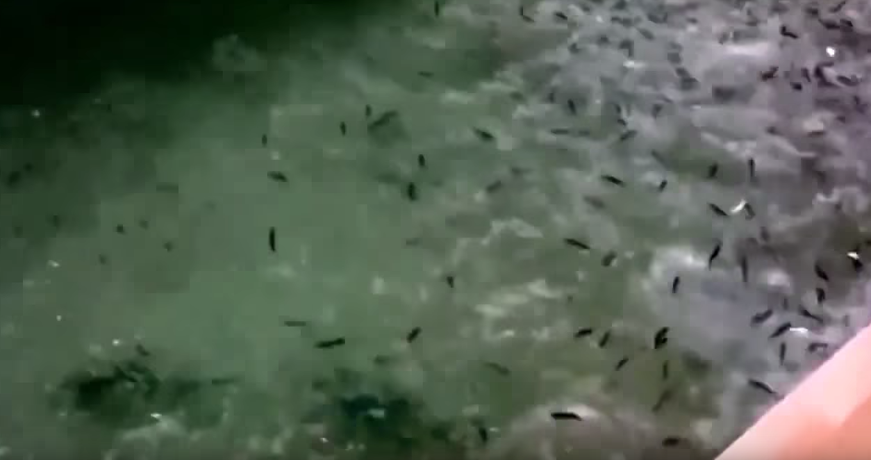 These Giant Trevally make a lightning fast attack on bait by the shore.