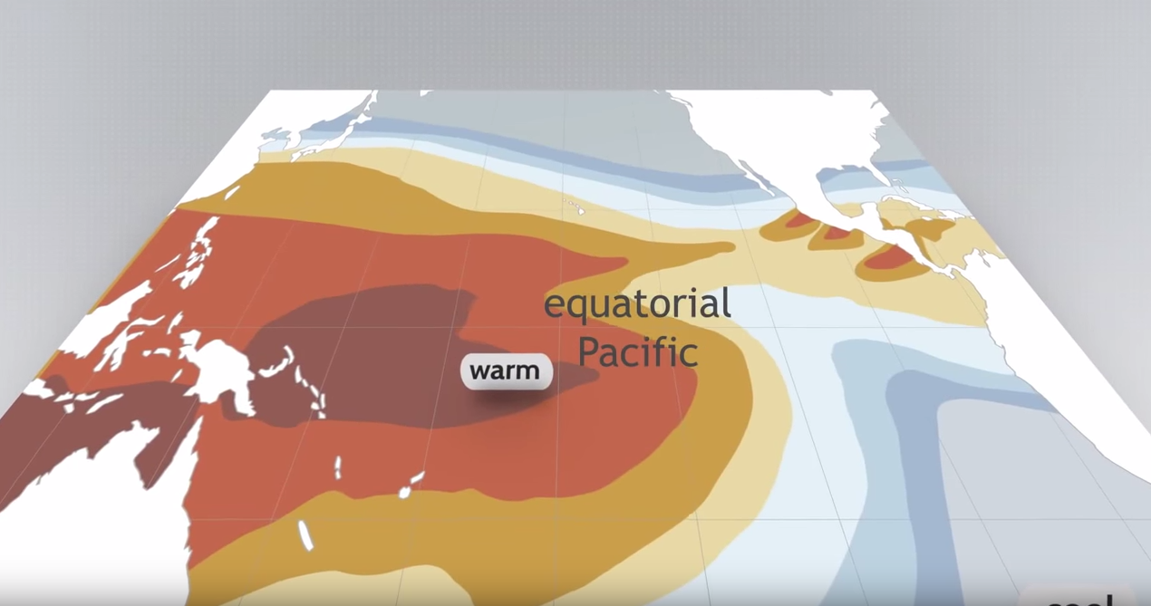 Above: This video demonstrates how warm water in the central Pacific can influence prevailing pressure and precipitation patterns across the ocean basin. These atmospheric disturbances influence the average position of the Jet Stream. In turn, the jet alters temperature and precipitation patterns in the United States.