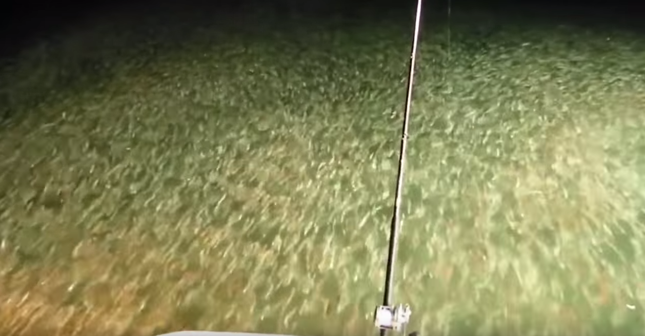 While squid fishing one night in La Jolla, CA, these fishermen stumbled upon a pretty incredible scene of a huge spawn of squid floating around. Would you dive right in?
