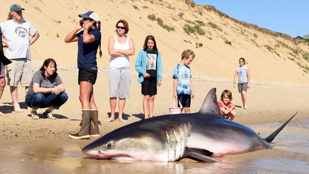 Above: A crowd gathers near a beached shark. (Image Credit: Jack Cohen Photography)