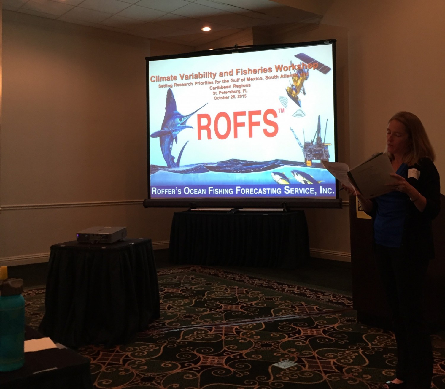 This note is to inform you that Roffer’s Ocean Fishing Forecasting Service, Inc. partnered with SECOORA, NOAA NMFS, NASA and GCOOS and held an important workshop entitled “Climate Variability and Fisheries Workshop: Setting Science Priorities for the Gulf of Mexico, South Atlantic, and Caribbean Region.” This workshop was held on St. Petersburg Beach, FL October 26-28, 2015 and approximately 55 people participated from government (federal and state), academia (public and private) and private industry (for profit and not for profit). While most of the participants were from the South Atlantic, Gulf of Mexico and Caribbean regions, there were others from the northeast and middle Atlantic regions as well. These participants formed a group of experts from fishery management councils, federal and state fisheries and climate entities, academia and private industry scientists along with fishing industries representatives, and non-governmental organizations.