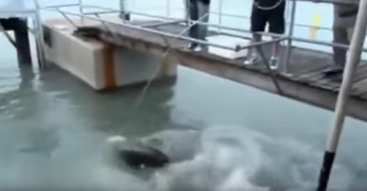 Giant goliath grouper from a pier!