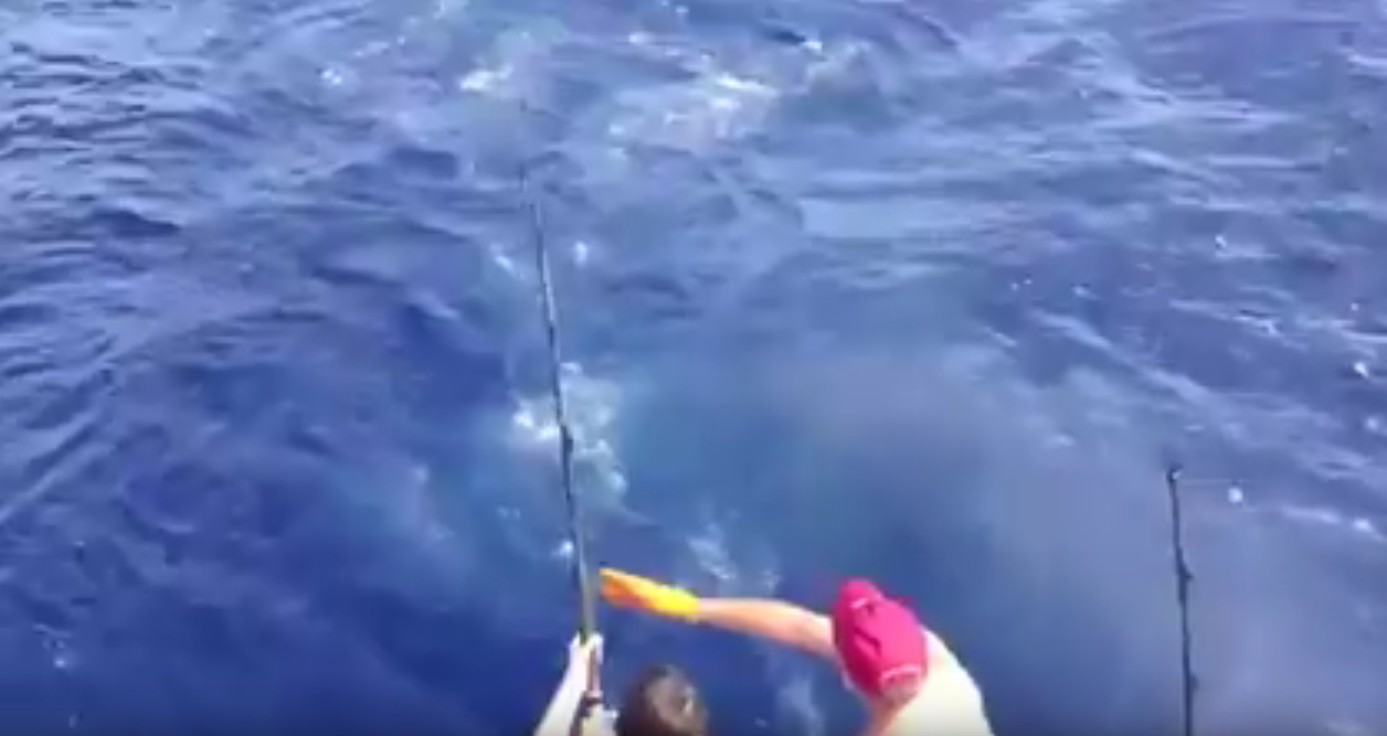 Captain Rich Hellmuth on the Wani Kanati Sport Fishing Yacht off the coast of Harbour Island Bahamas works Blue Marlin as it chases a yellow fin tuna the way a kitten chases a ball of yarn. Video credit to Deborah Hellmuth.