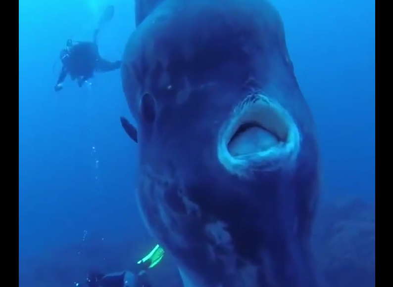 Giant Fish! ? This is a Mola Mola found near Santa Maria Island in Azores, Portugal! Credit: Portuguese diver Miguel Pereira.