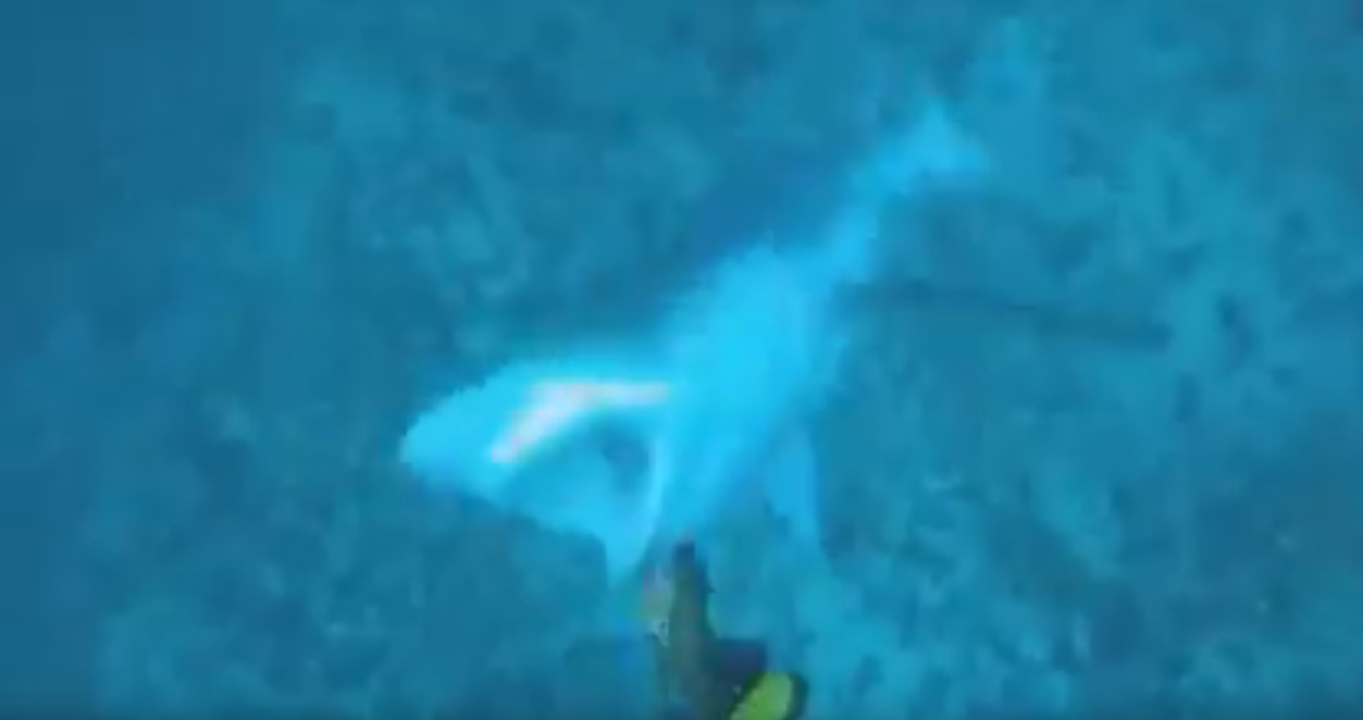 A Western Australian spear fisherman has captured the terrifying moment he was attacked by a reef shark off the Coral Bay coast. Courtesy of Brad Vale.