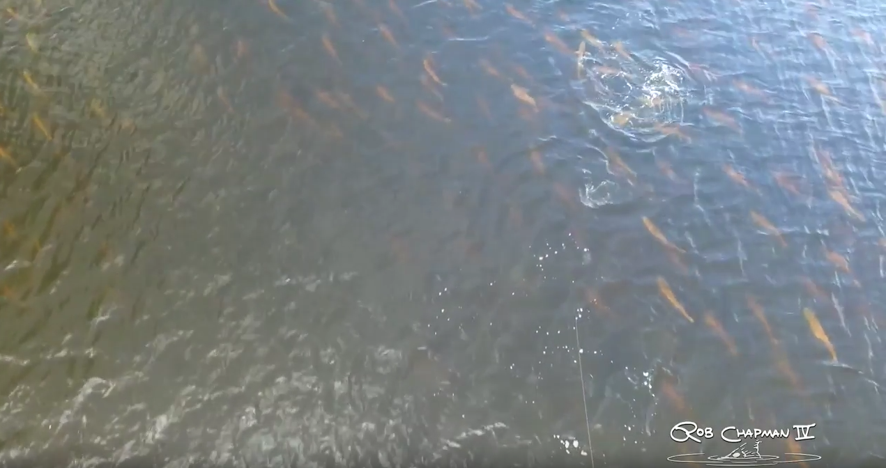 Amazing aerial footage capturing the largest redfish ever videoed being caught on drone – from the lure hitting the water, to the strike, to the landing and release. Rob Chapman IV, Blair Ashton, and Captain Jon Lulay were fishing with in East Central, Florida over the biggest inshore school of breeder redfish in the world, and SaltyShore’s Sam Root videoed the action from his DJI Phantom III. Once we started fishing the school of over 400 redfish – which were all way over the size limit and approaching world record size – Sam positioned the drone to film the school. Luckily we were able to film the entire sequence!