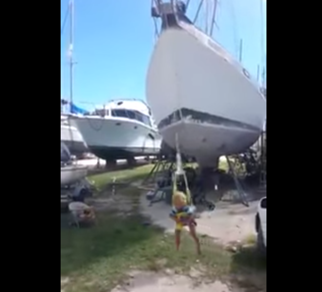 When you are living in a boat yard with babies, you’ve gotta get creative somehow to keep them busy!
