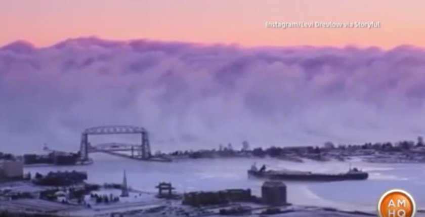 When the warm water of Lake Superior met with the -18 air temperature in Duluth, MN, this monster wall of sea smoke arose.