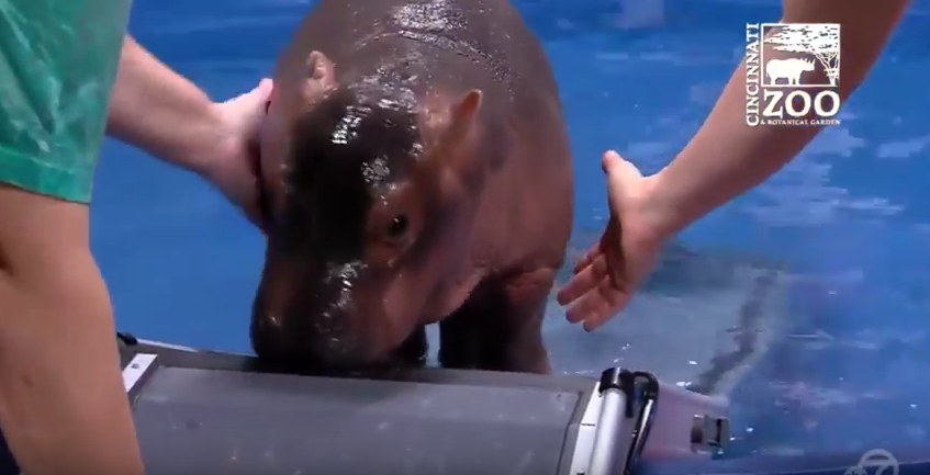 This adorable baby hippo got her own ramp to get in and out of the pool.
