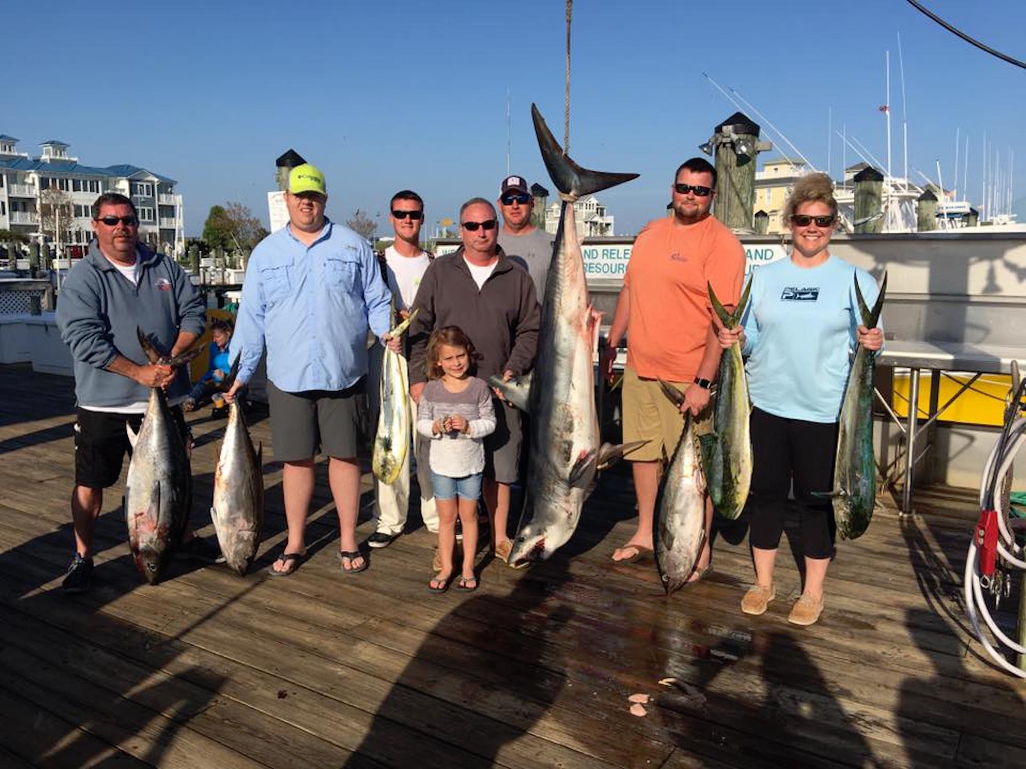 Captain Jeremy Blunt and the crew of the Wrecker out of the Ocean City Fishing Center caught the first bluefin tuna and the first mahi of the season today in the same body of water.  Captain Jeremy found 67 degree water fishing 80-120 fathoms in the Poor Man’s Canyon where he put his anglers on a 147 pound mako shark, a 47 pound bluefin tuna, three yellowfin tuna as big as 37 pounds and three mahi.  The tuna and mahi were caught on trolled spreader bars and ballyhoo and the mako was caught on bluefish.  Congratulations to Captain Jeremy and the crew of Wrecker!