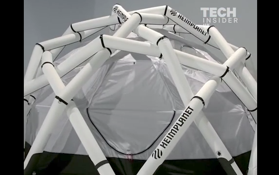 This inflatable tent can be put up in a few minutes and it withstands wind speeds of up to 111mph.