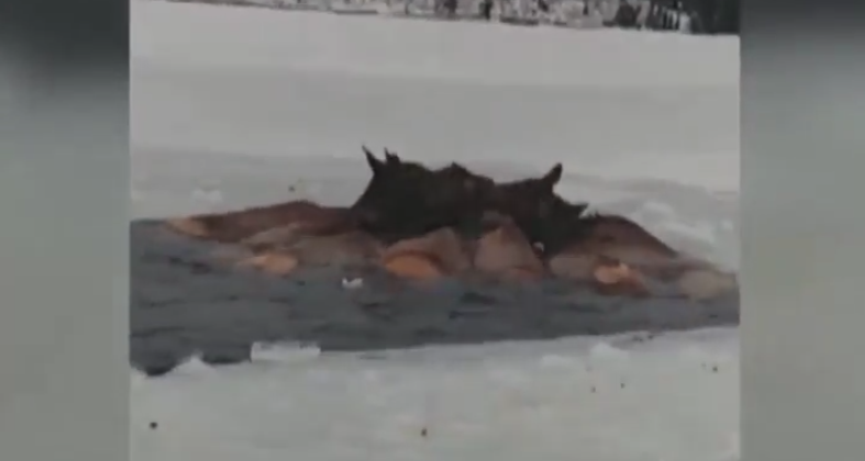 Rescuers walked onto thin ice to save elk that were in freezing water. Video Courtesy: Animalkind Stories | Facebook