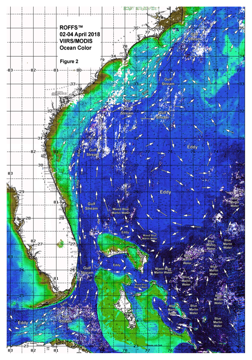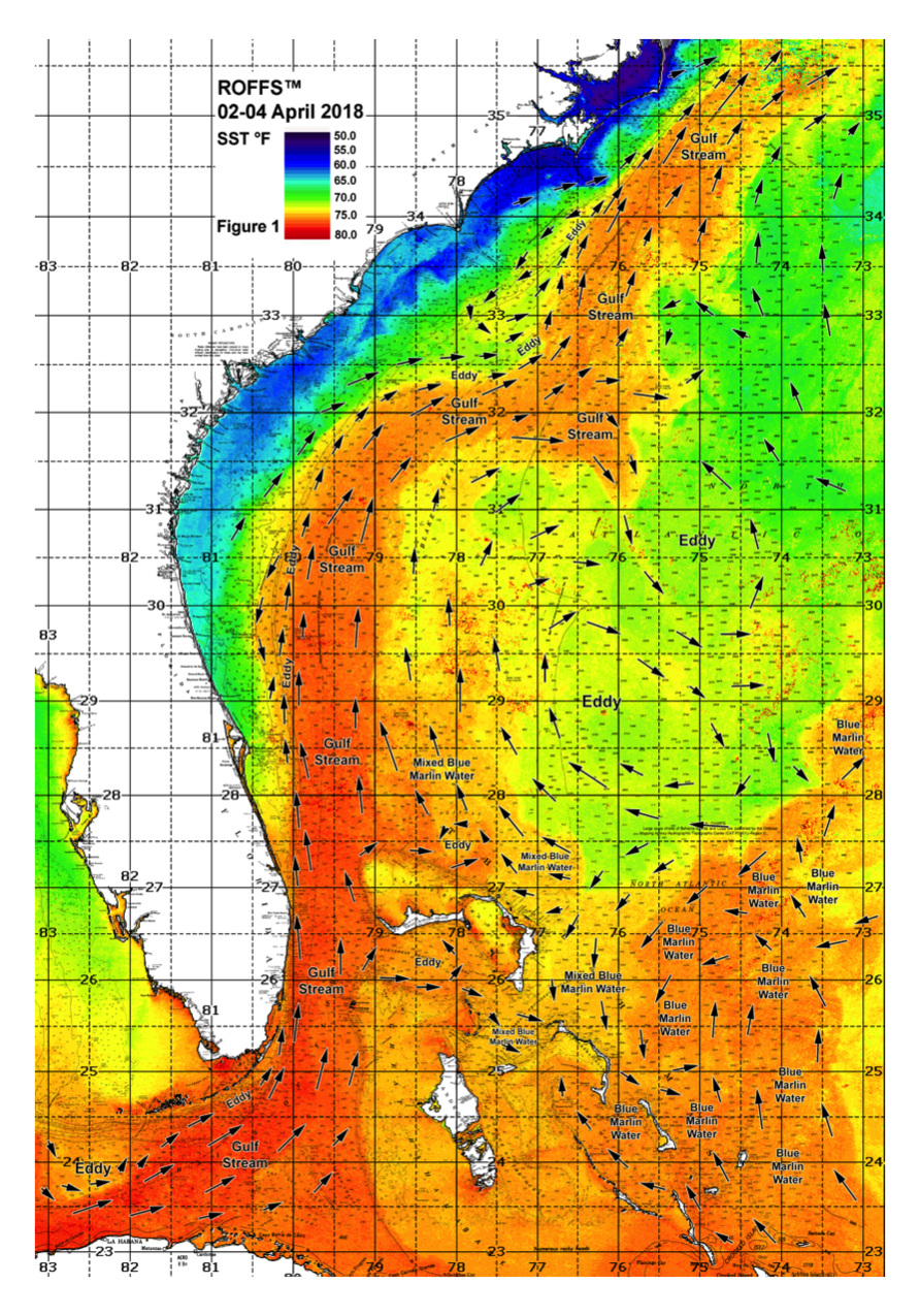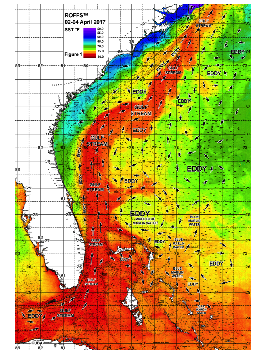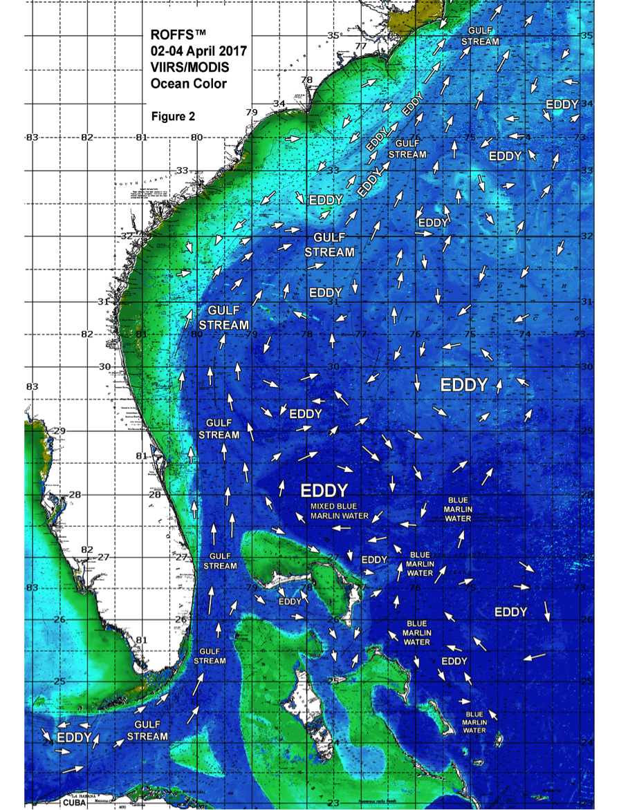 ROFFS™ continues its spring preview series by providing an overall update of the oceanographic conditions during early April for the east coast of the United States from the Florida Keys north to Cape Hatteras, NC including the entire offshore Gulf Stream region. As always, we have used a combination of many different data sets, but mainly sea surface temperature (SST) and ocean color/chlorophyll images. We will discuss these overall ocean conditions for the present spring season and how these conditions may translate to the near future fishing season.