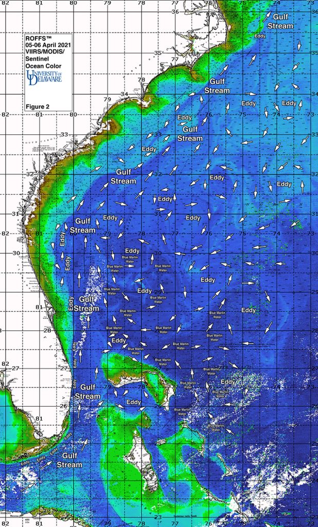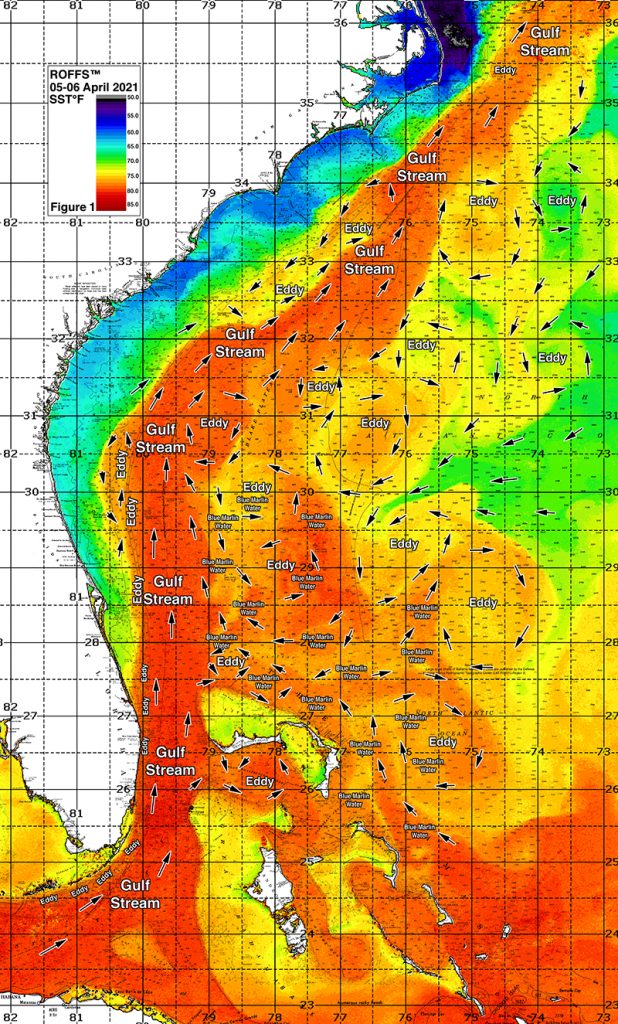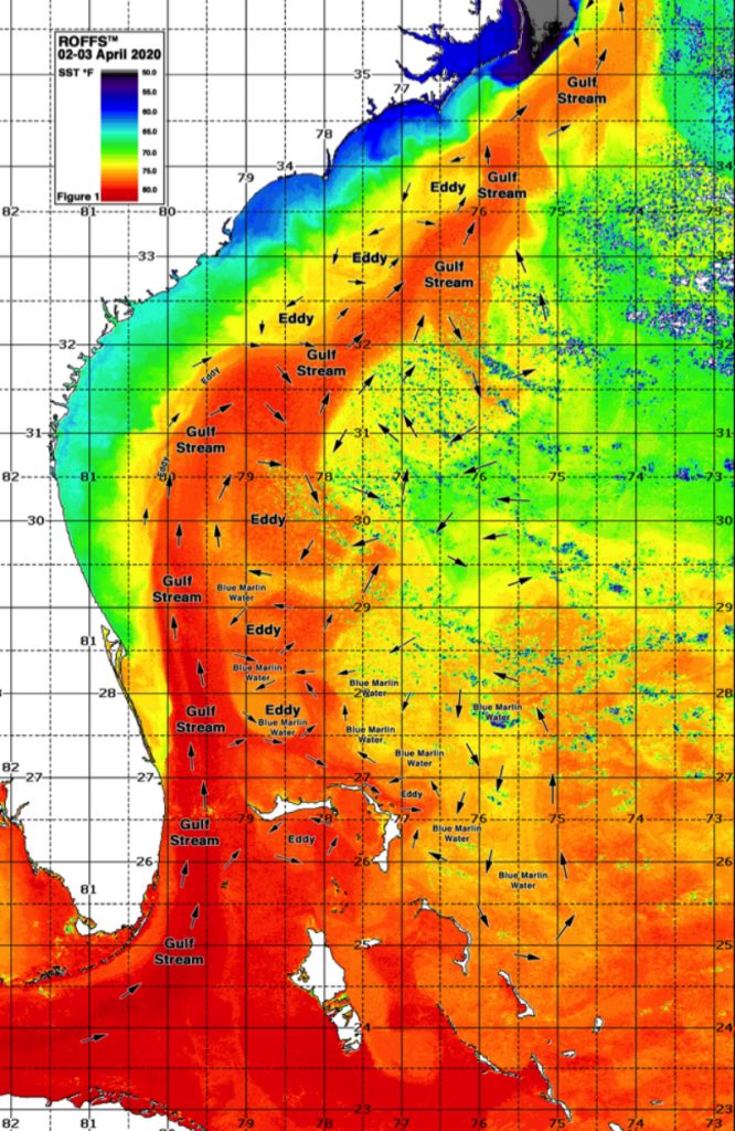 ROFFS™ continues its spring preview series by providing an overall update of the oceanographic conditions during early April for the east coast of the United States from the Florida Keys north to Cape Hatteras, NC including the entire offshore Gulf Stream region. As always, we have used a combination of many different data sets, but mainly sea surface temperature (SST) and ocean color/chlorophyll images. We will discuss these overall ocean conditions for the present spring season and how these conditions may translate to the near future fishing season.