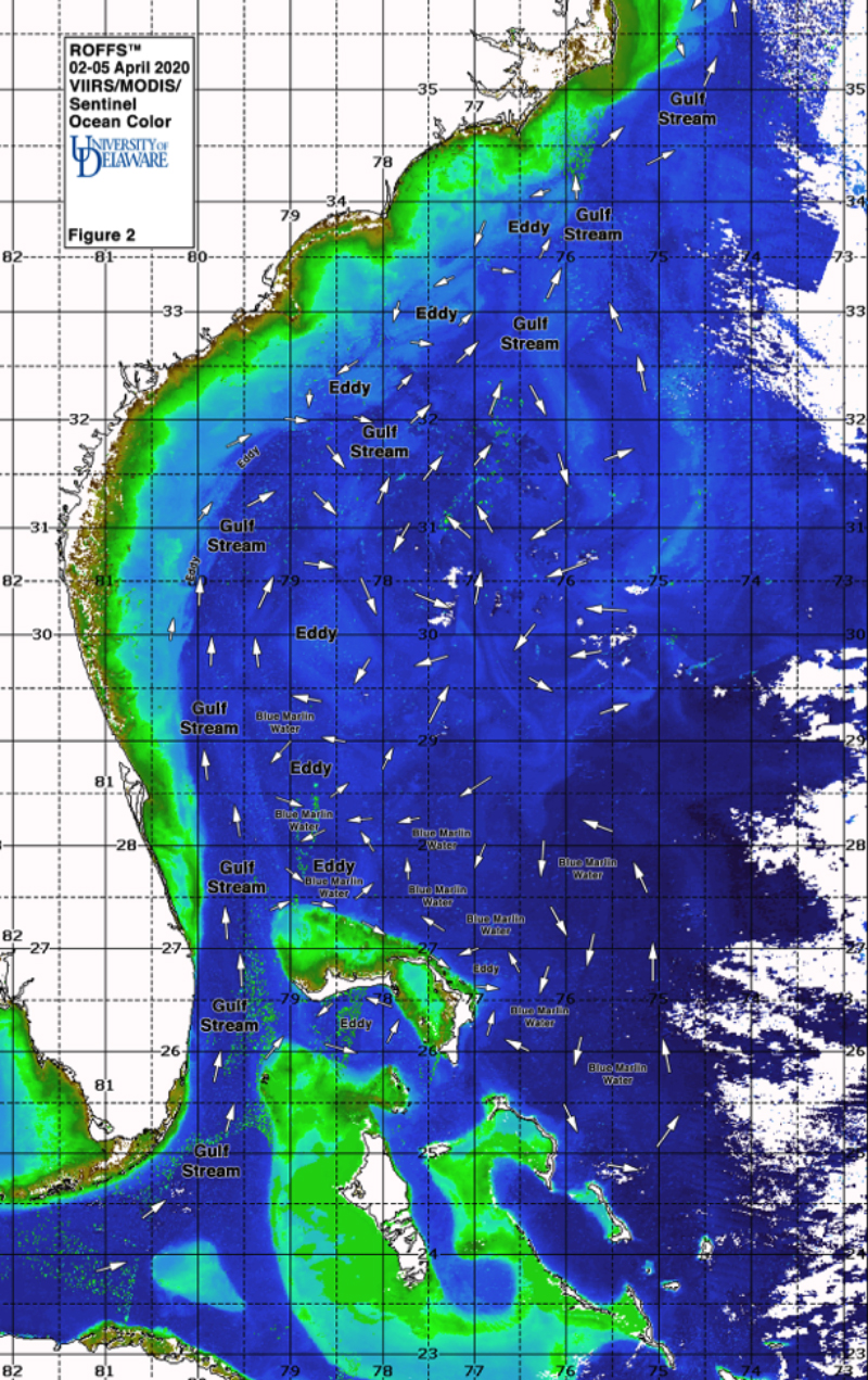 ROFFS™ continues its spring preview series by providing an overall update of the oceanographic conditions during early April for the east coast of the United States from the Florida Keys north to Cape Hatteras, NC including the entire offshore Gulf Stream region. As always, we have used a combination of many different data sets, but mainly sea surface temperature (SST) and ocean color/chlorophyll images. We will discuss these overall ocean conditions for the present spring season and how these conditions may translate to the near future fishing season.