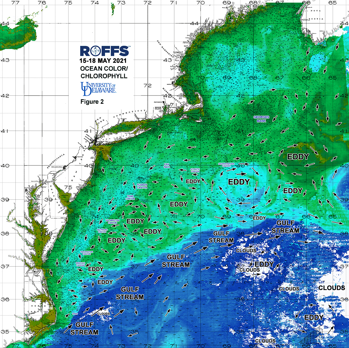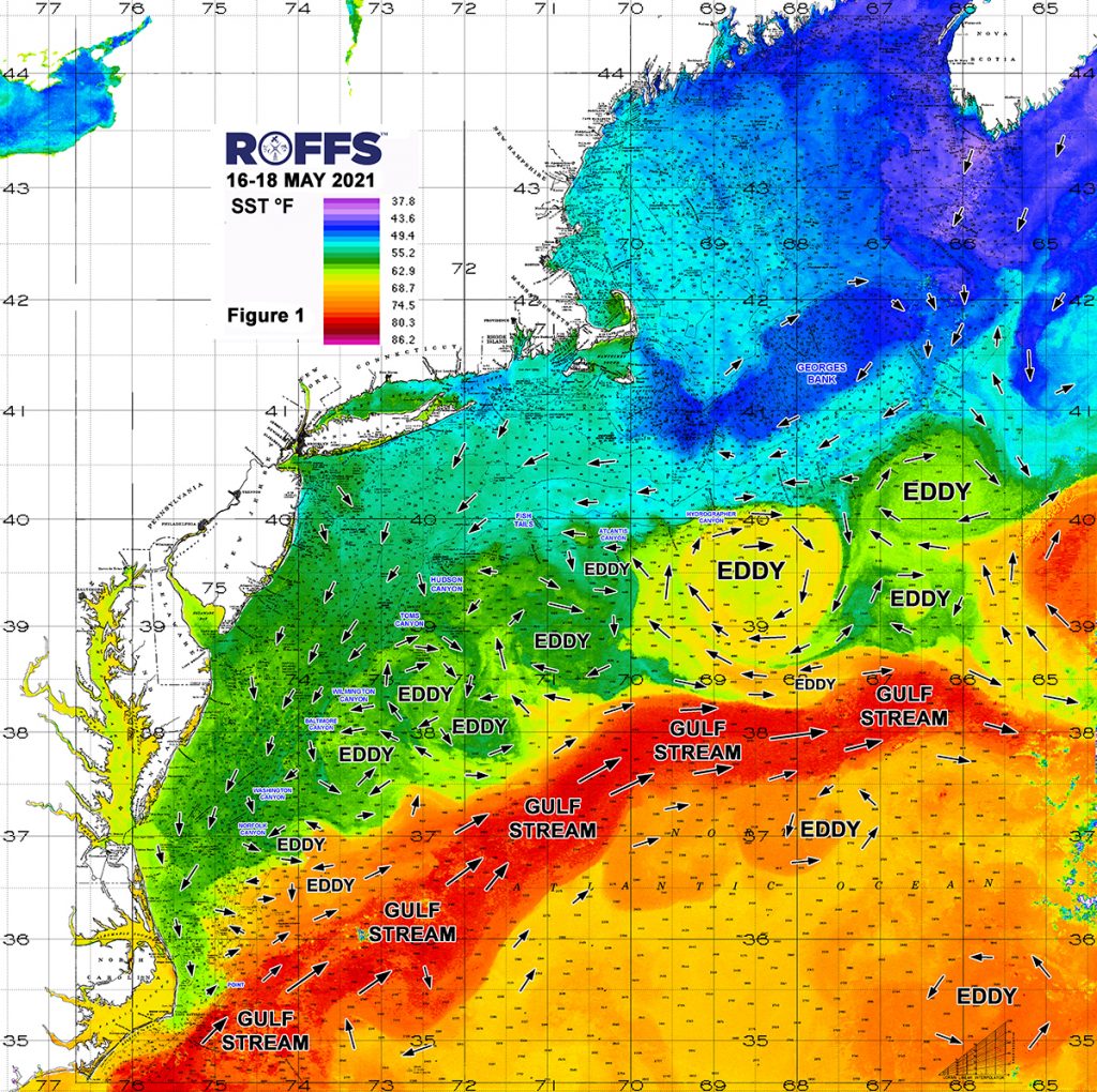 ROFFS™ concludes its 2021 spring preview series by providing an overall update of the oceanographic conditions from mid-May offshore of the northeastern United States focusing in on the Mid-Atlantic Bight region and its canyons that includes the zone from Cape Hatteras to Georges Bank into the Gulf of Maine. We again utilized a combination of many different data sets mainly satellite derived sea surface temperature (SST) and ocean color/chlorophyll images. In this edition we will discuss the present ocean conditions and what it means for the upcoming late-spring to summer fishing season for the Cape Hatteras, NC to Massachusetts offshore canyon areas.