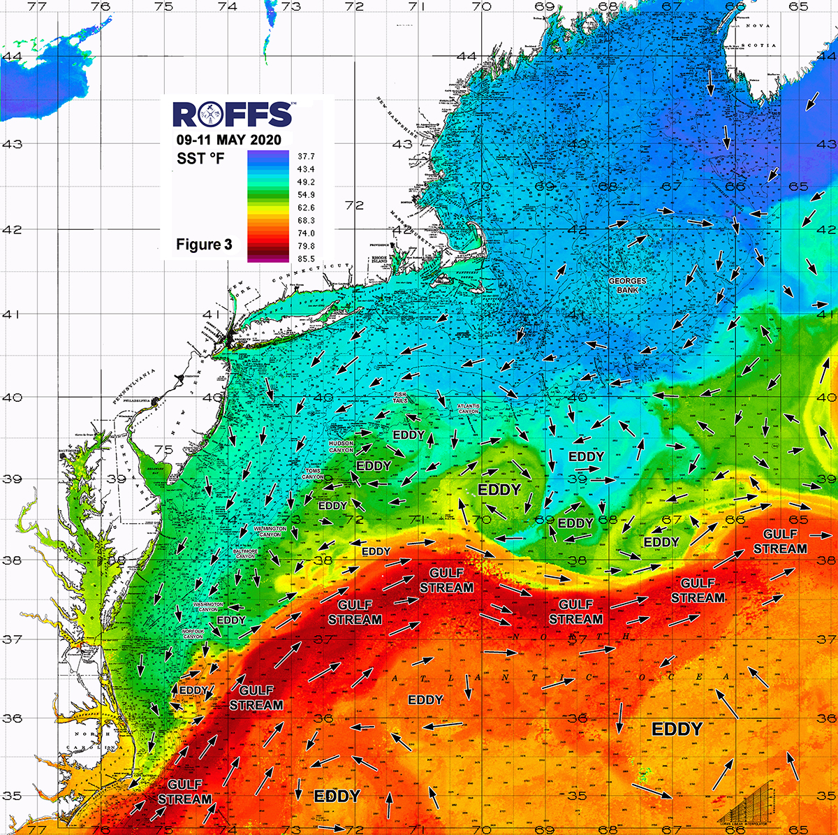 Contact ROFFS™ (1-321-723-5759 / fishing@old.roffs.com / www.roffs.com, @roffsfishing on Facebook and Instagram) for the up-to-date detailed fishing conditions and get the inside track to where the better fishing locations will be tomorrow. Our experienced satellite and fishery oceanographers will continue to monitor the northeast U.S. oceanographic conditions closely as the tuna season quickly improves and the active summer fun fishing and tournament season rapidly approaches. Get your boat ready now, as tuna conditions are improving rapidly especially in the Atlantis, Veatch and Hydrographer Canyon area. Thank you for your support.