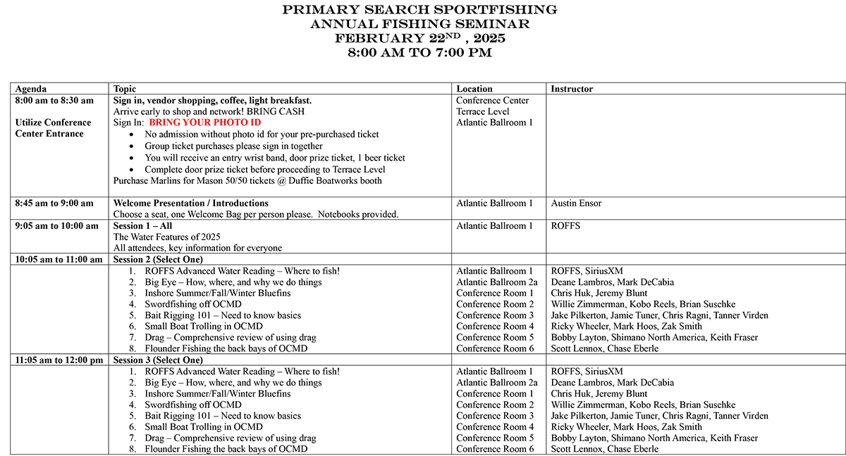 Come see Matt Upton – President of ROFFS™ at the 2025 Primary Search Sportfishing Offshore Fishing Seminar Saturday February 22, 2025 from 8AM – 7PM at the Ashore Hotel and Conference center in Ocean City, MD!