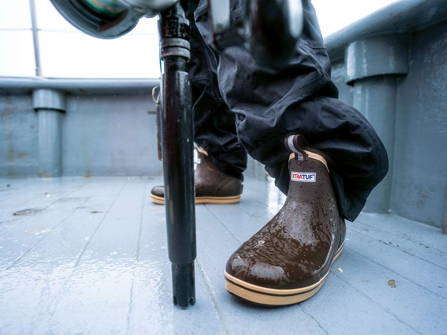 Xtratuf helped catalyze the ongoing deck-boot revolution and continues to evolve with its Ankle Deck Boot Sport, which combines performance and innovation. Up to 30 percent lighter than traditional boots, it features a durable, slip-resistant Biolite foam construction and a one-piece outsole. Offering sneaker-like comfort, high energy return and superior traction, it’s the ultimate choice for comfort and agility on deck.
