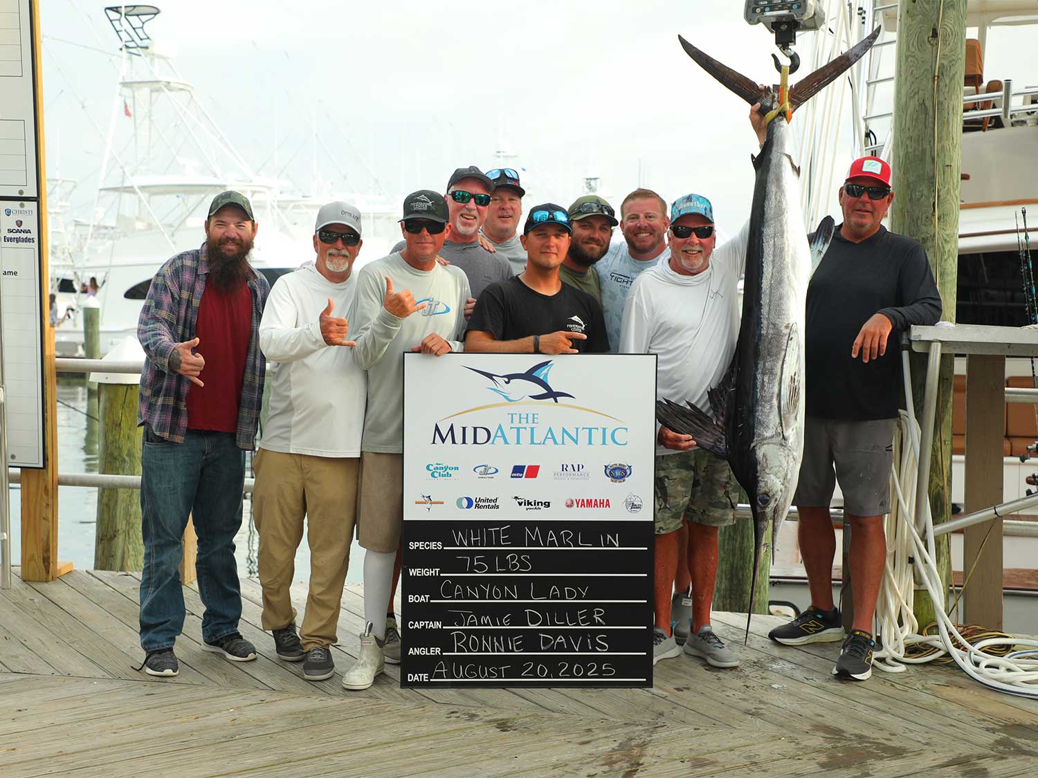 Above: Jamie Diller’s Canyon Lady claimed the Heaviest White Marlin with a 75-pounder, securing a top prize of $875,363 and the division crown. Credit MidAtlantic Tournament