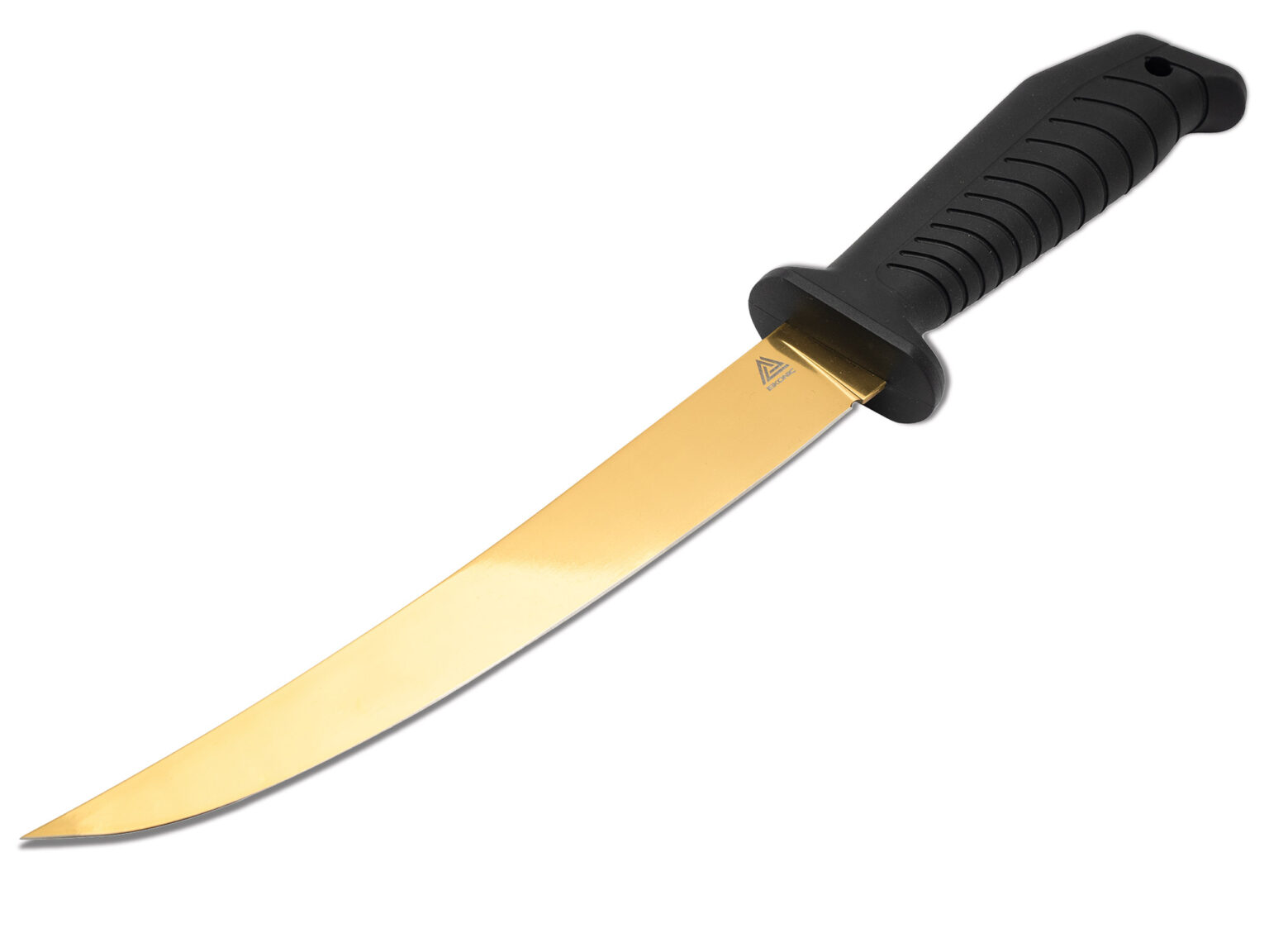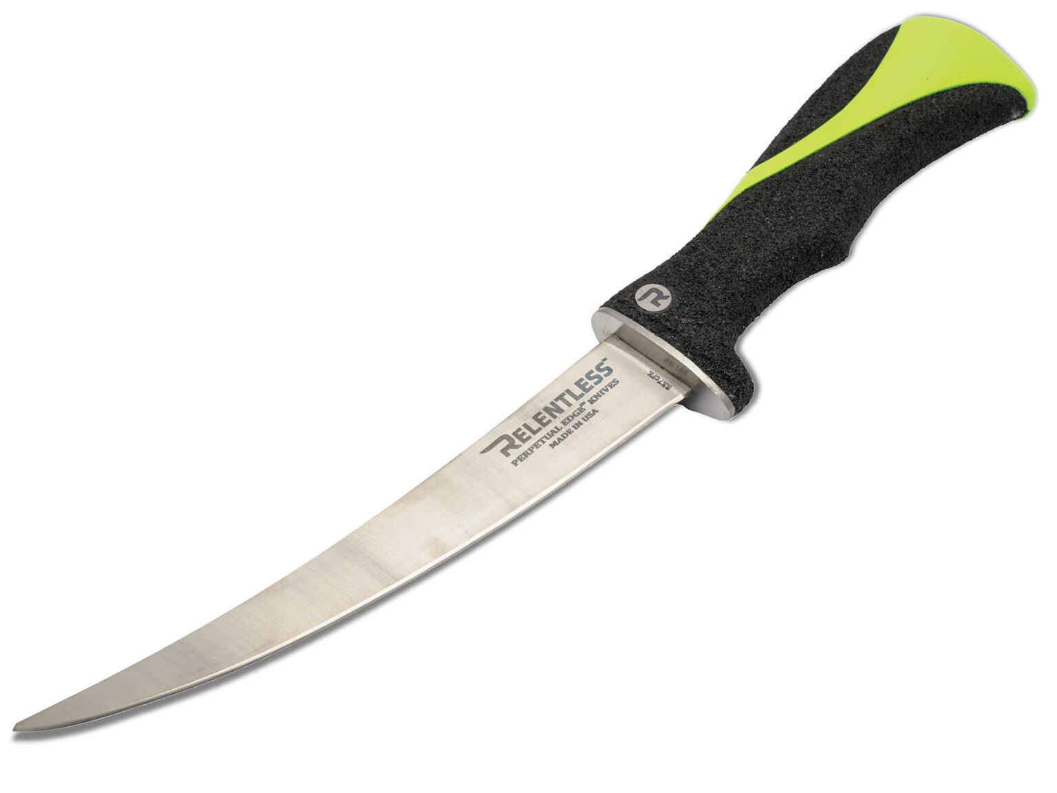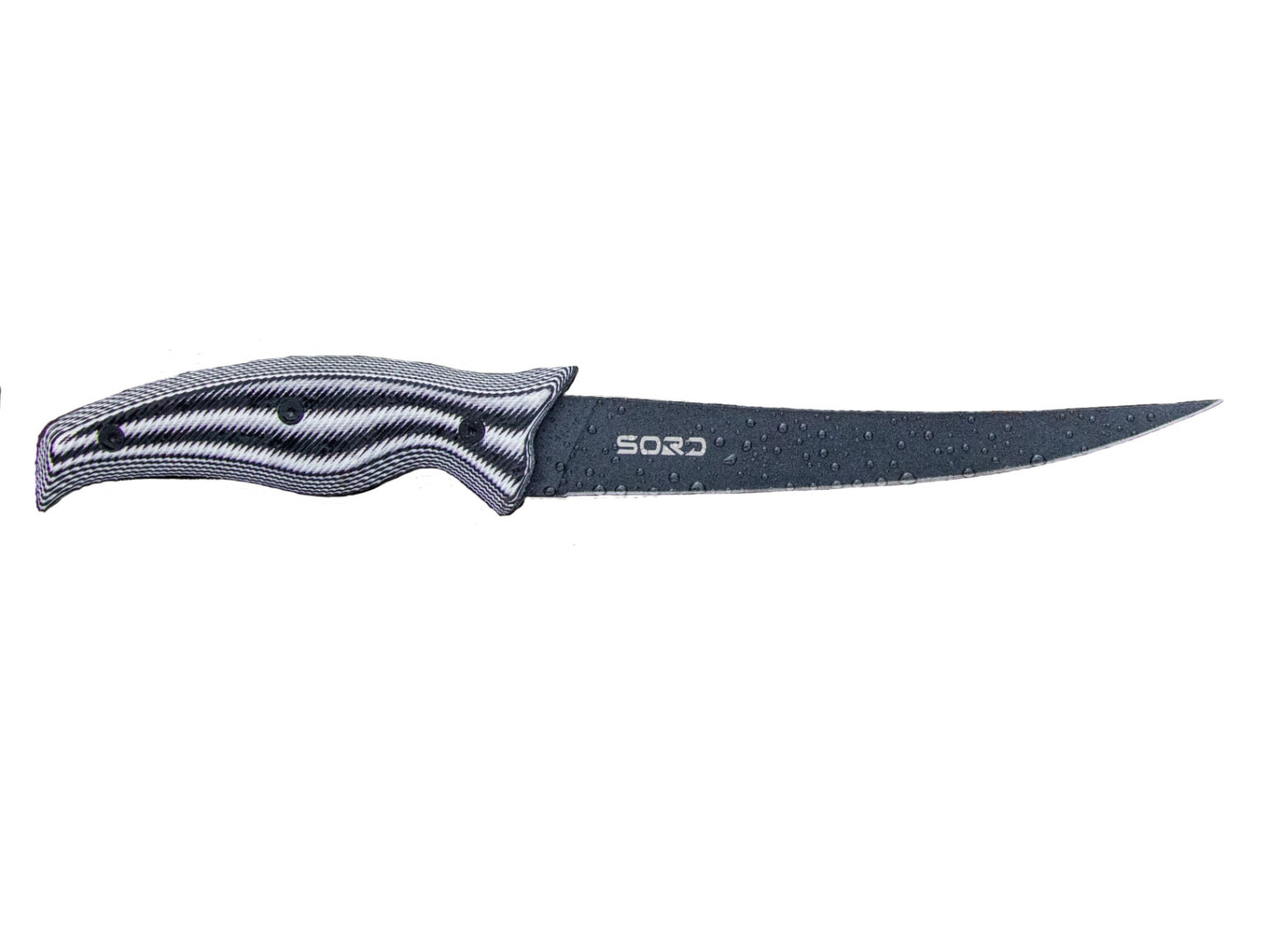 Sord is a company founded by hardcore fishermen intent on designing high-quality fishing products. They’ve got a full line of fillet knives, and their 6-inch Flexy is a smaller knife perfect for processing little snappers, seatrout or flounder. It’ll slash through a pile of panfish in a hurry. The full-tang carbon steel blade takes and holds a super-sharp edge, and a Teflon and titanium coating means it won’t rust. This blade has a lot of flex and rides over ribcages smoothly. Along with looking cool, the G10 handle sticks to your hand even when slimed. The shape of the handle is comfortable to work with, and the full tang gives this knife nice balance.