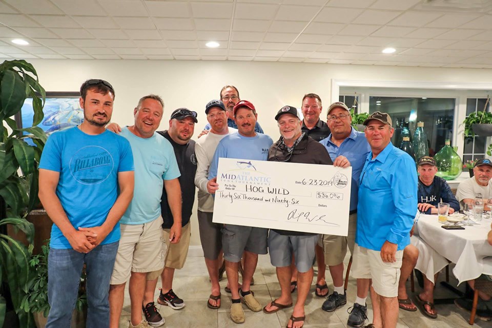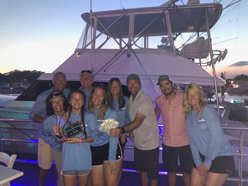 Pictured Left to right, Capt. Bill Davis, Jace Alzheimer, Greg Robinson South Jersey Yacht Sales, George Robinson III Owner South Jersey Yacht Sales, Jamie Diller tournament chairman, Erik Mateer, Kurt Vonseekamm Jr. Not pictured Matt Schadd of Valhalla Yacht Sales. “