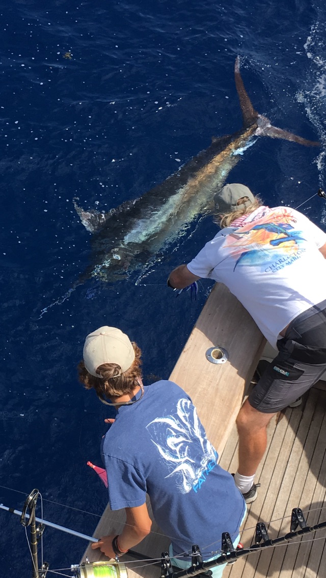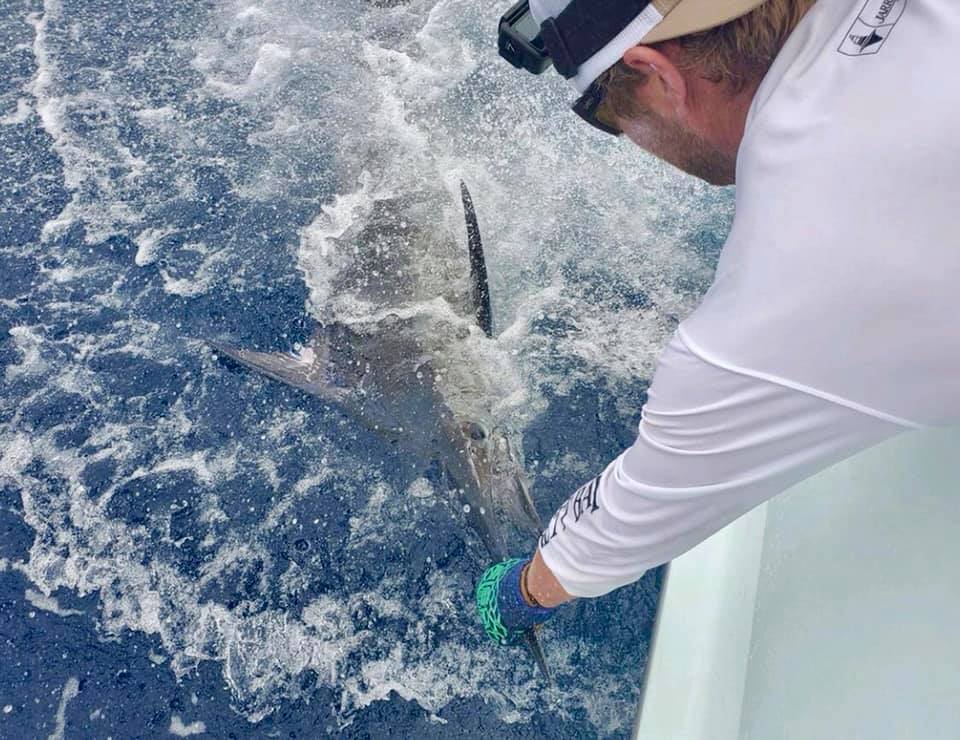 ROFFS™ client Ven Poole (Waste Knot) releasing a blue marlin during the Big Rock Blue Marlin tournament, Morehead City, NC