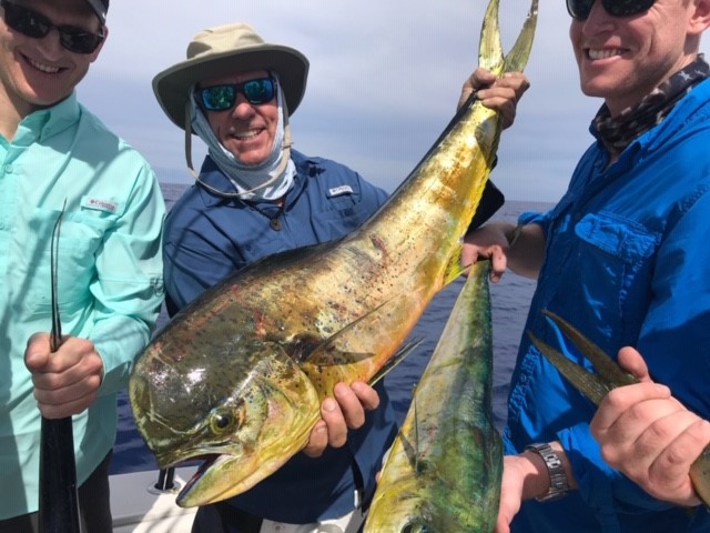 "Thank you! Caught this inshore the NE Corner of the Big Rock!! 54 pound dolphin and and 25 pound wahoo! And we were back at the dock before lunch!!"