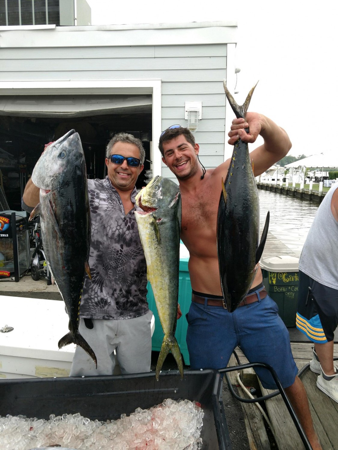 Ok so you have a happy new client so far. Landed on a couple of your numbers and took about 3 minutes to get tight. The Bluefin and Mahi caught at Coimbra Wreck but the yellowfin by 100 square and the Letters area in the Hudson. A dozen short Yellows released and 3 nice mahi kept up to 45 pounds. White Marlin released in the deep. Overall a great day! No Eyeballs caught that I heard of except for way East in the deep, Dip, Atlantis and Hydrographer. But what to me was unusual was that it was just me, my buddy Bobby Lee on the Blackhawk and a guy from Jersey in the area. Day after 4th i guess kept guys home, but seas were perfect!