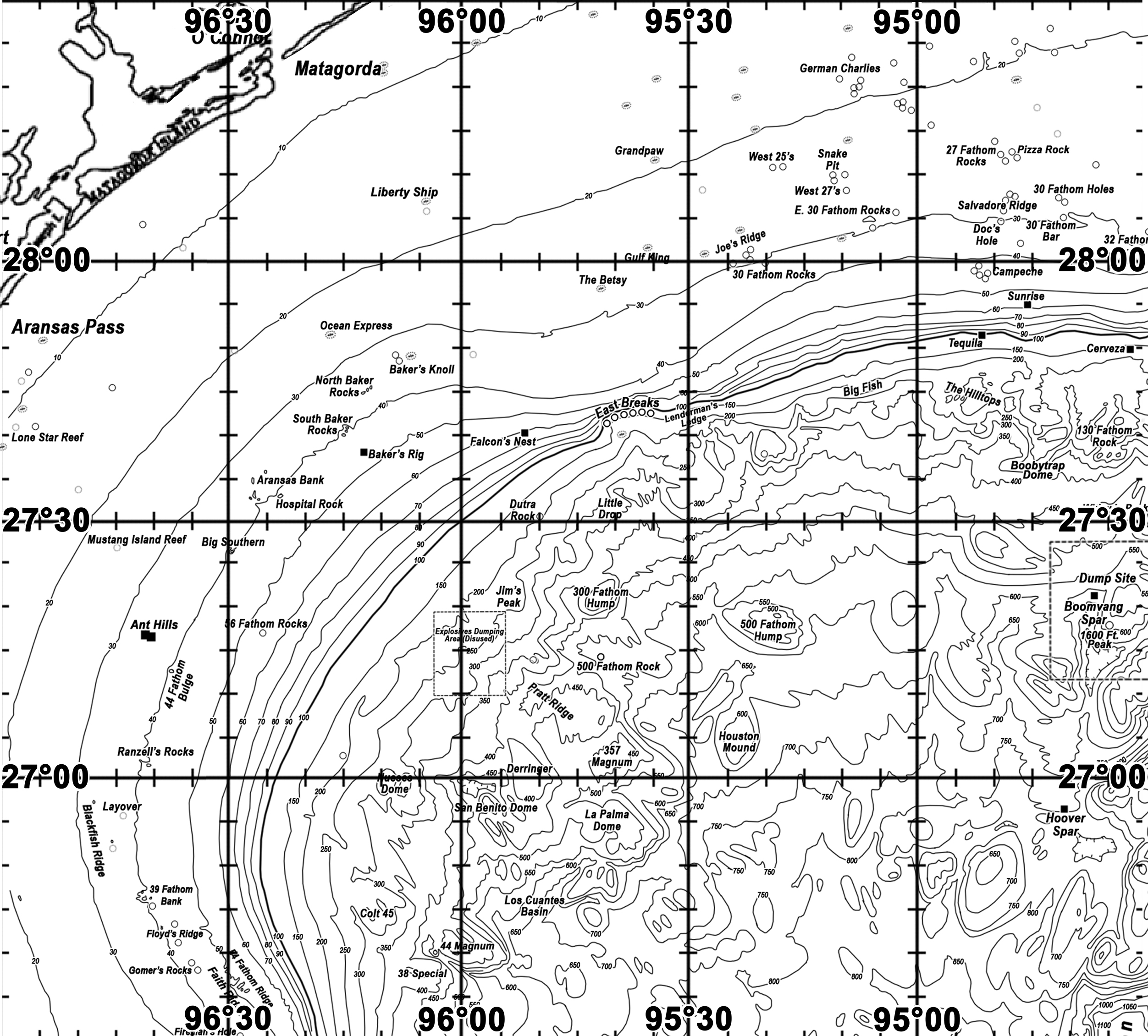 Areas of Interest: Colt 45, Ranzell's Rock, 300 Fathom Hump, Aransas Rock, Hospital Rock, East Breaks, Airplane, Tequila, Hill Tops