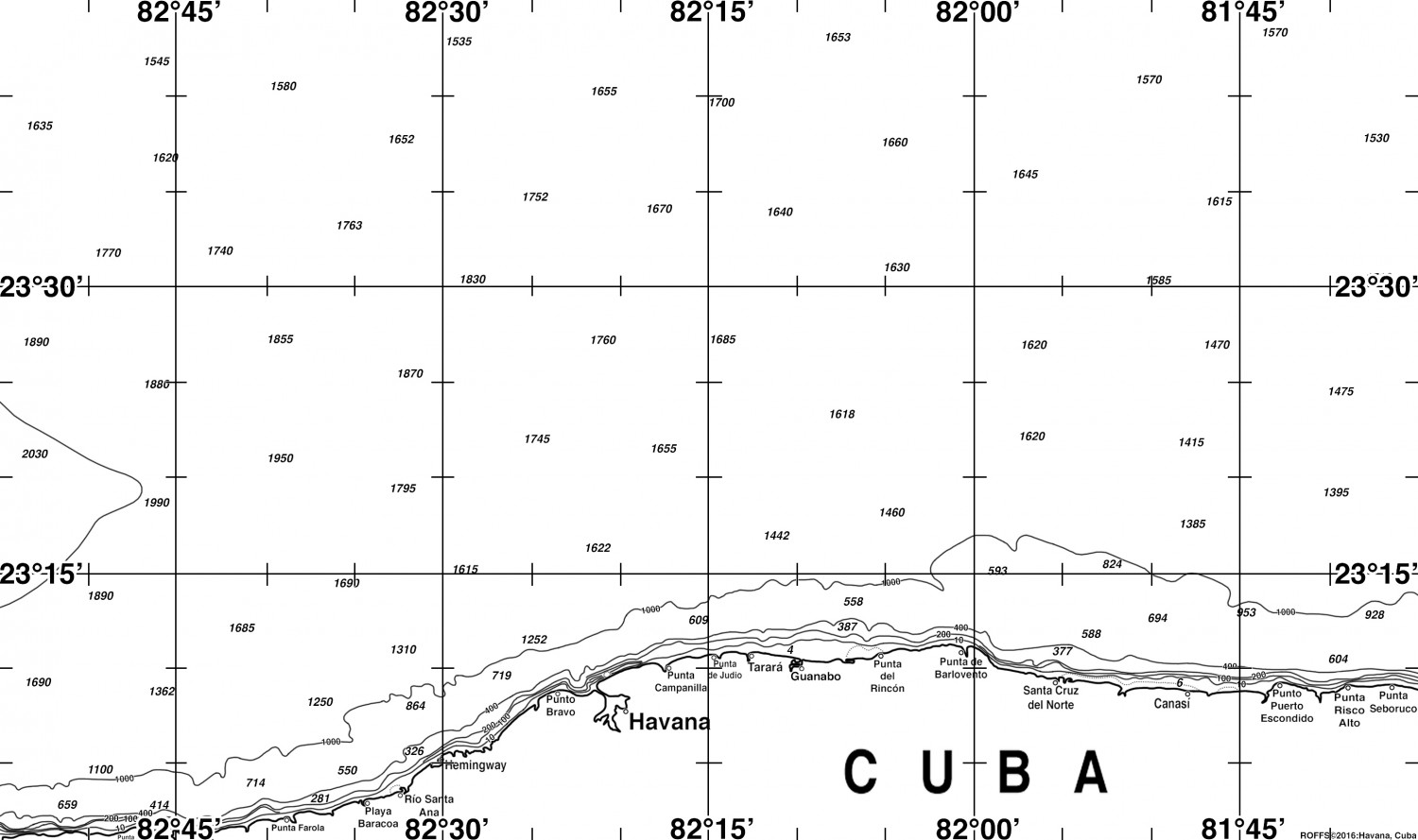 Areas of Interest: Punta Farola, Playa Baracoa, Rio Santa Ana, Hemingway, Punto Bravo, Havana, Punta Campanilla, Punta de Judio, Tarara, Guanabo, Punta de Rincon, Punta de Barlovento, Santa Cruz del Norte, Canasi, Punto Puerto Escondido, Punta Risco Alto, Punta Seborucco Common Inlets: Hemingway, Havana, Guanabo, Santa Cruz del Norte, Canasi, Punta SeboruccoDownload Sample (PDF)