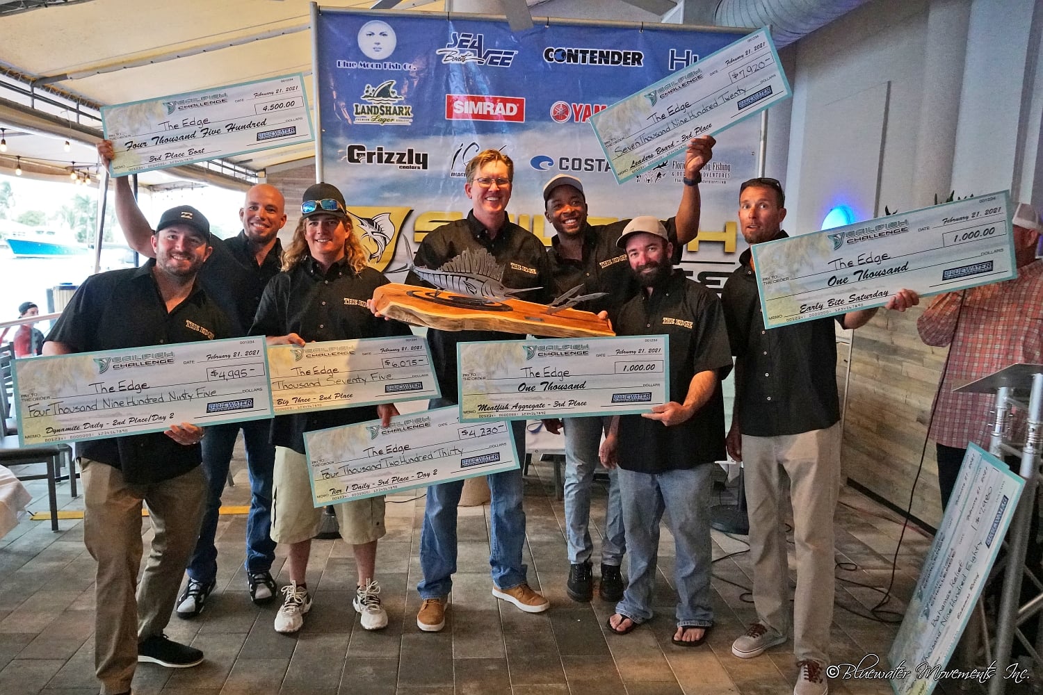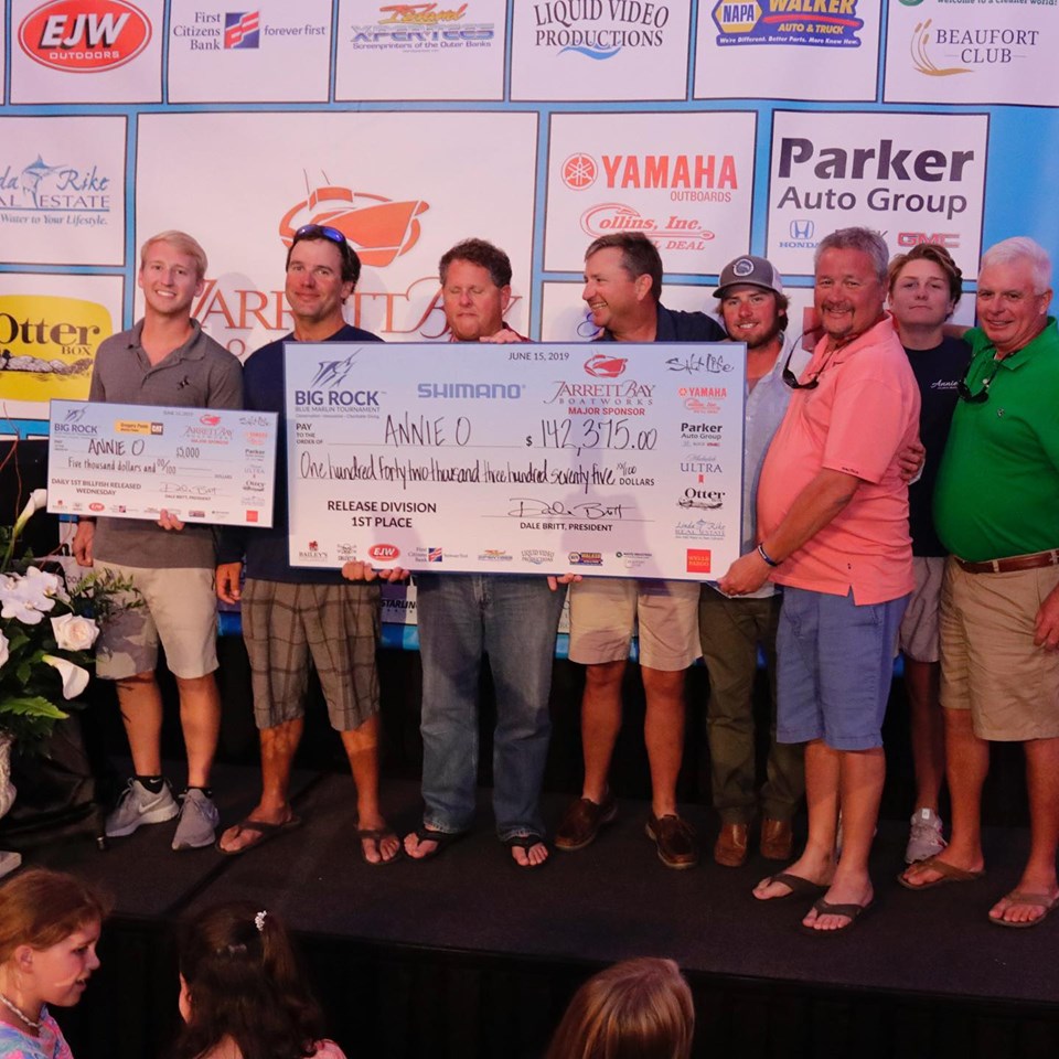 Emerald Coast Blue Marlin Classic (FL): 1st Place Heaviest Blue Marlin, 1st Place Top Angler – Heaviest Blue Marlin, 1st Place $10K Blue Marlin Jackpot, 1st Place $5K Blue Marlin Jackpot, 1st Place $2.5K Blue Marlin Jackpot, 1st Place $1K Blue Marlin Jackpot, 1st Place $750 Blue Marlin Jackpot, 1st Place $500 Blue Marlin Jackpot, 3rd Place $10K Release Jackpot, 3rd Place $5K Release Jackpot, 3rd Place $1K Release Jackpot, 3rd Place $750 Release Jackpot & 3rd Place $500 Release Jackpot Art Favre, Captain Jason Buck, Trey Dobson, Nick Bovell, John Gibson, Christian Fast, Wes Minion, Lance Glaser (A Work of Art); 1st Place Catch & Release Division, 1st Place Crew Division, 1st Place $10K Release Jackpot, 1st Place $5K Release Jackpot, 1st Place $2.5K Release Division, 1st Place $1K Release Division, 1st Place $750 Release Division, 1st Place $500 Release Jackpot & 2nd Place Top Release Angler Captain Justin Drummond, Van Wichers, Matty Discoll & Cyler Pape (Quantified); 1st Place $1K Dolphin Jackpot, 1st Place $750 Dolphin Jackpot, 1st Place $500 Dolphin Jackpot & 2nd Place Heaviest Dolphin Zack Seltzer, Captain Kelly Graham & Wally Gentry (Evil Eyes); 2nd Place $10K Release Jackpot, 2nd Place $5K Release Jackpot, 2nd Place $1K Release Jackpot, 2nd Place $750 Release Jackpot, 2nd Place $500 Release Division, 3rd Place Release Division Overall, 3rd Place Crew Division & 3rd Place $2.5K Release Jackpot Captain Devin Potts (C-YA); 1st Place $5K Tuna Jackpot Captain Blake Applewhite & Justin Applewhite (Liquid Apple).