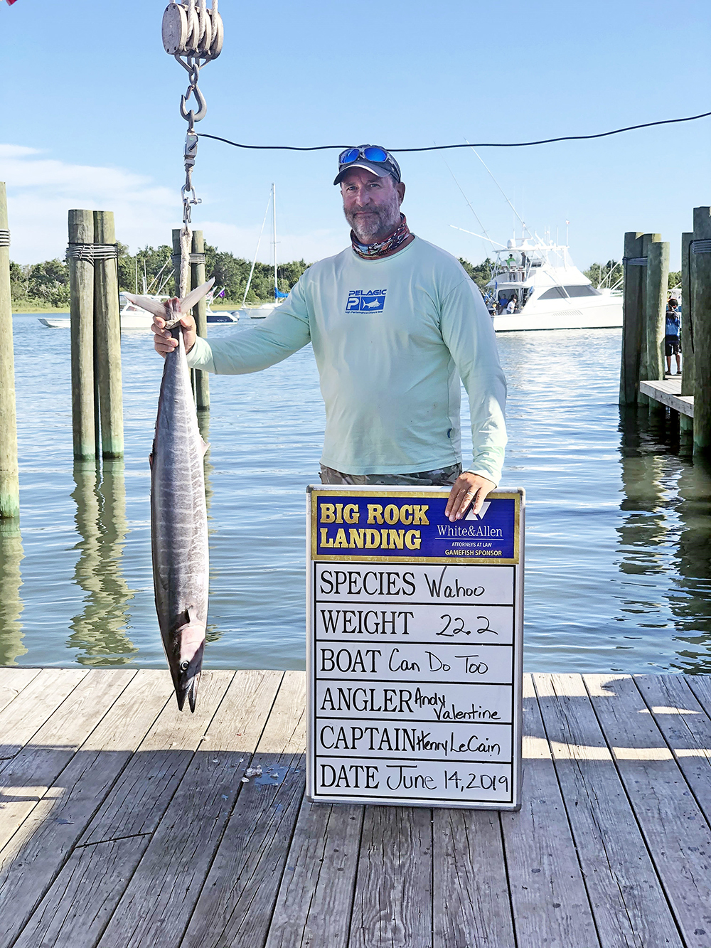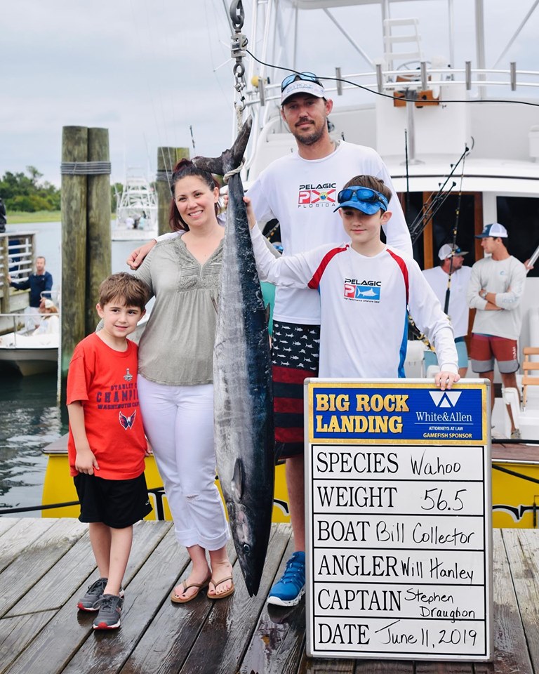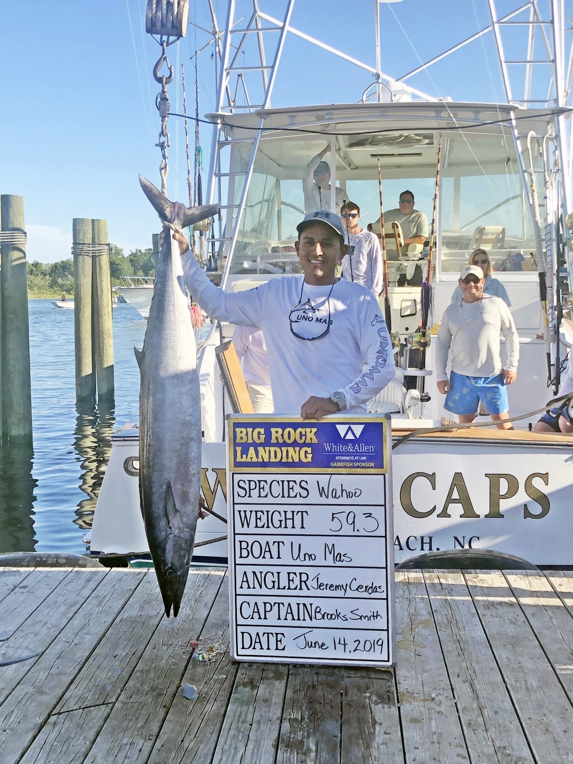 Big Rock Blue Marlin Tournament (NC): 1st Place Heaviest Blue Marlin Robert Warren Jr. & Captain Chuck Linder (Honey Hush); 3rd Place Heaviest Blue Marlin Captain Lee Smith (Carterican); 1st Place Billfish Release Brian Allen & Captain Gray Blount (Wall Hanger); 1st Place Heaviest Dolphin Terry Young (Goombay); 1st Place Junior Billfish Points Bill Farrior & William Farrior Jr. (Job Site); 1st Place Wahoo Captain Jonathon Rose (Sarcastic); 1st Place Tuna Mark Ellington (Reel Country); 2nd Place Dolphin Mark Becker & Captain Scott Laurence (No Problem); 2nd Place Wahoo Steven Matthews & Captain Shane Brafford (Carolina Time); 3rd Place Billfish Release Captain Alan Willis (Shenandoah).