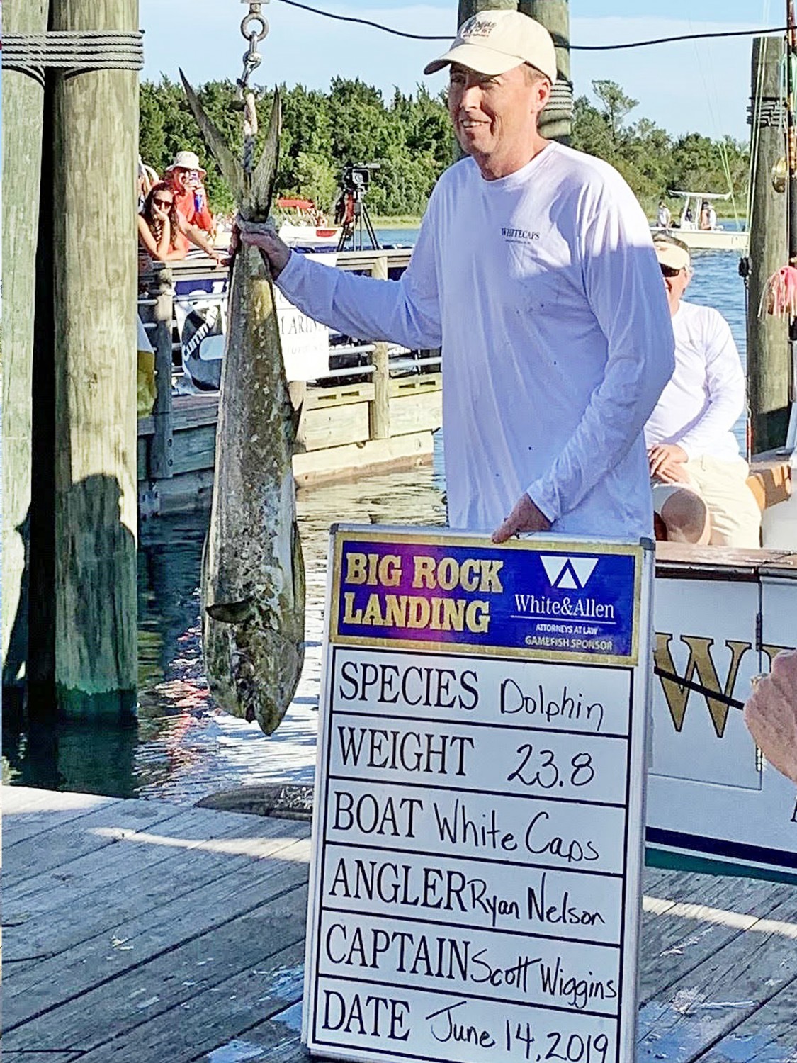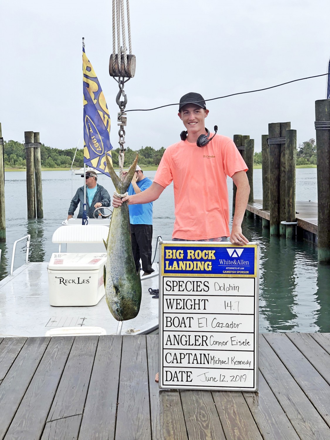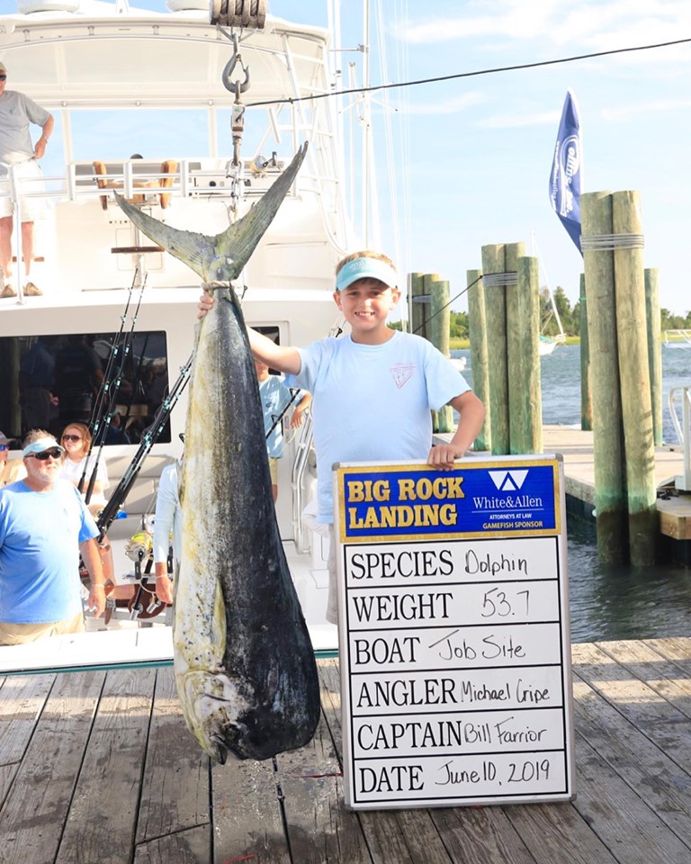 Big Rock Kids (NC): 1st Place Heaviest Dolphin Captain Jordan Finch, Emma Kate Kleinhans, Ryan Wilkins, Birdy Wilkins & Finn Finch (Developin Habits); 1st Place Top Junior Angler Boy & 1st Place Level 3 Daily Release Captain Wade Fickling & Will Hanley (Labrador); 2nd Place Total Release Points Level 1 & 2nd Place Total Release Points Level 2 Captain Mark Chambers (Due South); 2nd Place Heaviest Dolphin Captain Chris Daniels (Big Trouble).